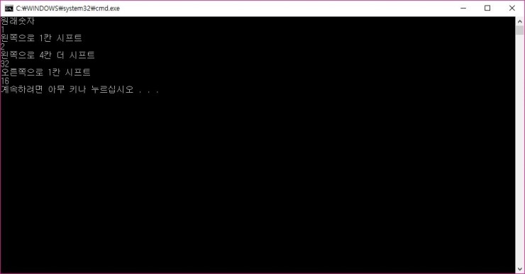 cout << "왼쪽으로 4칸 더 시프트" << endl << number << endl;