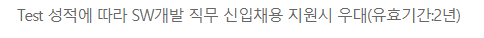 2문제시 직무적합성평가 (서류)단계 가산 + 공채시 SW역량테스트 PASS -> 즉 면접으로 직행