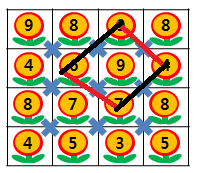 만약 두 대각선중 1개라도 값이 0이면 사각형이 만들어지지 않을것임. 이때는 투어자체를 하지않음